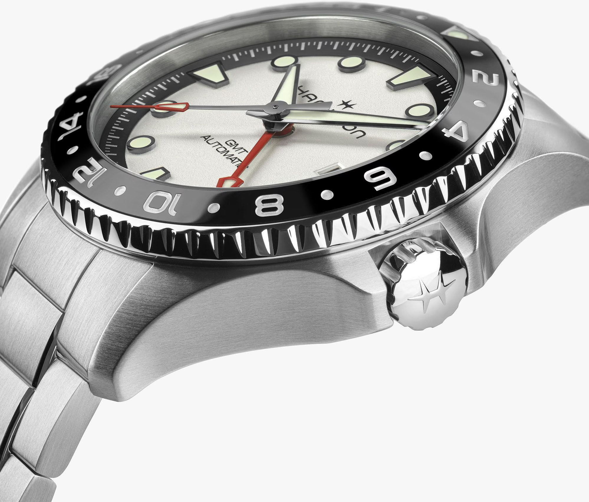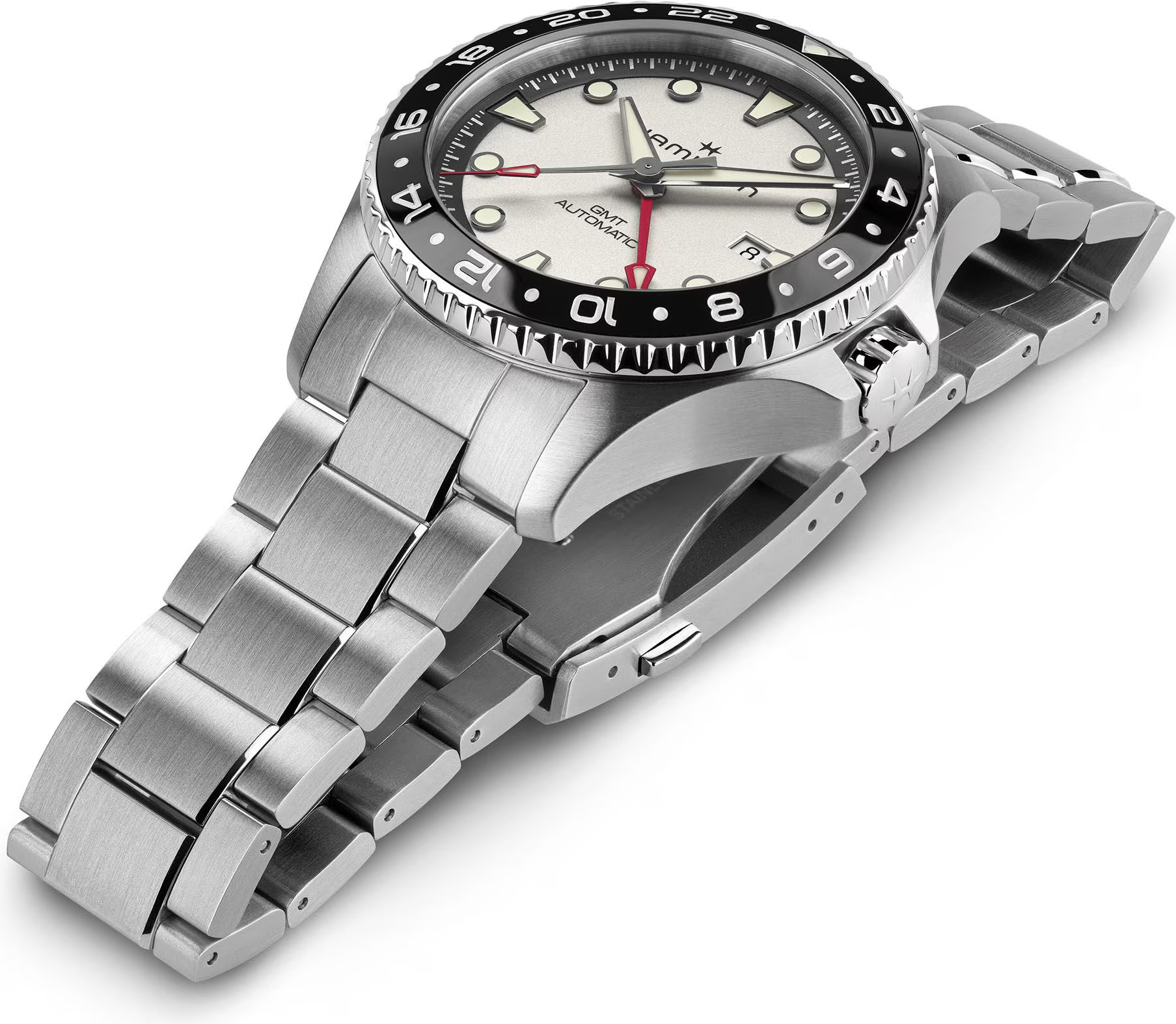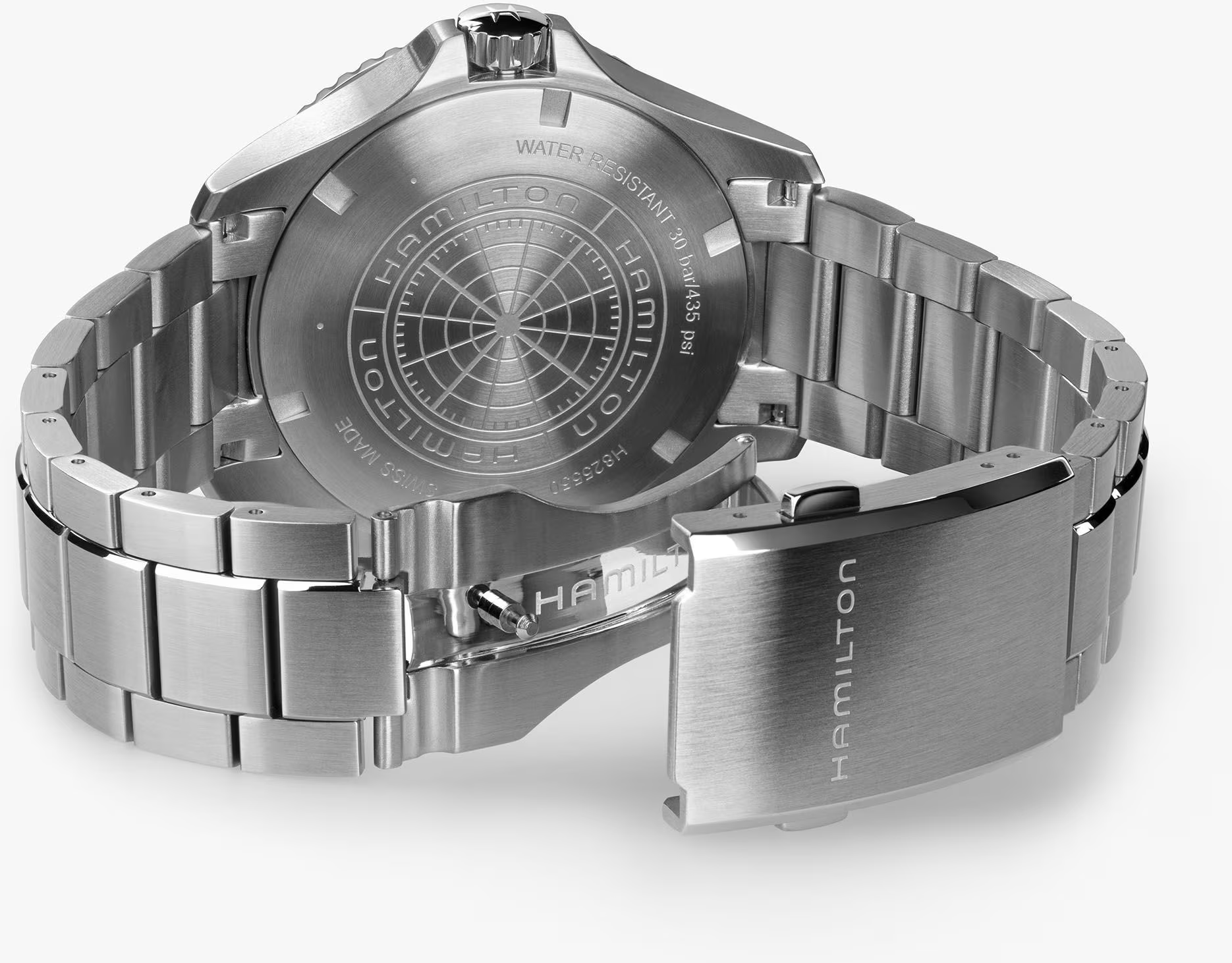 Funkce:Čas, datum, strojek Swiss kalibr H-14 (krokové ústrojí ocel/kámen) - vyráběn firmou Eta exklusivně pro Hamilton (25 kamenů), rezerva chodu 80 hodin, polokmity setrvačky 21.600/h = přesnost chodu 3 - 5 vteřin denně (vysoké přesnosti stroje je docíleno jemnou regulací šroubky na ramínkách věnce setrvačky), úprava rotoru samonátahu dle vzoru Hamilton - rotor zaopatřen speciálními výřezy pro tlumení případných nárazů na hodinky během nošení, vlásek setrvačky je vyroben ze slitiny materiálů Nivachron (velmi dobře odolává magnetickému poli a díky tomu jsou hodinky stabilně vysoce přesné), automatický nátah (hodinky se natahují pohybem ruky) + ruční nátah (hodinky lze natáhnout/dotáhnout dle potřeby i ručně korunkou), svítící ručičky a indexy (ručičky a indexy jsou potaženy luminiscenční vrstvou Super-LumiNova®, která po nasvícení dlouhou dobu svítí)