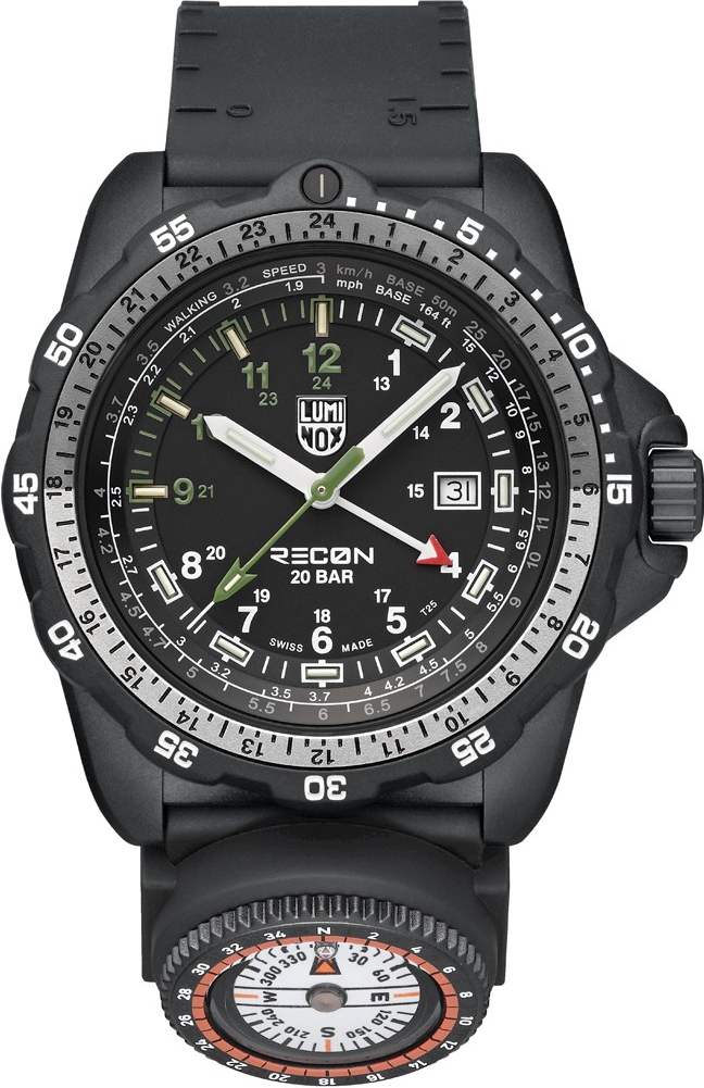 Luminox Recon Point Man 8830 Series XL.8837.2 jsou outdoorové navigační hodinky navržené ve spolupráci s taktickým specialistou Andreou Micheliem a patří k nejpraktičtějším modelům značky pro pohyb v terénu. Výrobce tuto referenci přímo prezentuje jako nástroj pro přesnou navigaci, orientaci a práci s více časovými pásmy. Pouzdro má průměr 46 mm a je vyrobeno z CARBONOX™, což zajišťuje velmi dobrou odolnost při zachování příjemné hmotnosti. Oficiální produktová karta uvádí 99 g, takže hodinky na ruce působí robustně, ale ne těžkopádně. Reference XL.8837.2 se odlišuje od jiných outdoorových modelů tím, že nejde jen o sportovní hodinky se zvýšenou odolností. Jde o skutečný navigační nástroj, který pracuje s GMT funkcí, kompasem a mapovými měřítky. Zákazníka osloví tehdy, když od hodinek očekává víc než jen čas a datum. V této podobě jde o mimořádně poctivý outdoorový model pro cestování, orientaci a náročnější denní použití, který si zachovává technický charakter a současně velmi dobrou každodenní nositelnost.