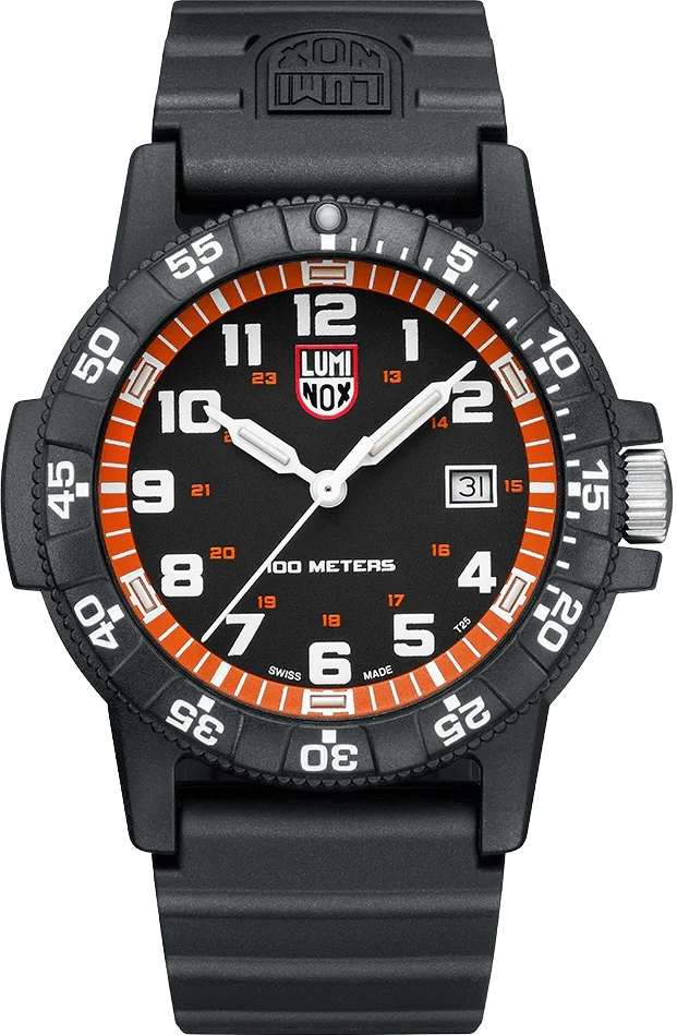 Luminox Leatherback Sea Turtle Giant 0320 Series XS.0329.1 jsou sportovní hodinky, které navazují na osvědčenou Giant 0320 platformu a podle ověřených prodejních podkladů kombinují černý číselník, datum a 24hodinový formát v robustním, ale lehkém provedení. Pouzdro má průměr 44 mm a je vyrobeno z CARBONOX™, tedy lehkého karbonového kompozitu. Hmotnost se podle dostupných parametrů pohybuje kolem 50-57 g, což je na hodinky této velikosti velmi příznivé. Právě nízká hmotnost je jedním z hlavních argumentů celé Leatherback Giant řady. Model na ruce působí robustně, ale současně nezatěžuje zápěstí při celodenním nošení. Reference XS.0329.1 patří mezi technicky přímočaré sportovní varianty, které nespoléhají na extravagantní barevnost, ale na kombinaci čitelnosti, funkční lunety a lehké konstrukce. Osloví zákazníka, který chce větší sportovní hodinky s jednoduchým, ale poctivým technickým základem a bez zbytečně módních výstřelků. V této podobě jde o model, který dává velký smysl jako každodenní sportovní společník.