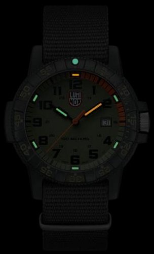 Funkce:Čas, datum, svítící ručky a indexy, jednosměrně otočná luneta, noční osvětlení Luminox Light Technology
