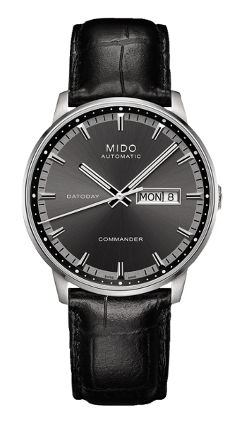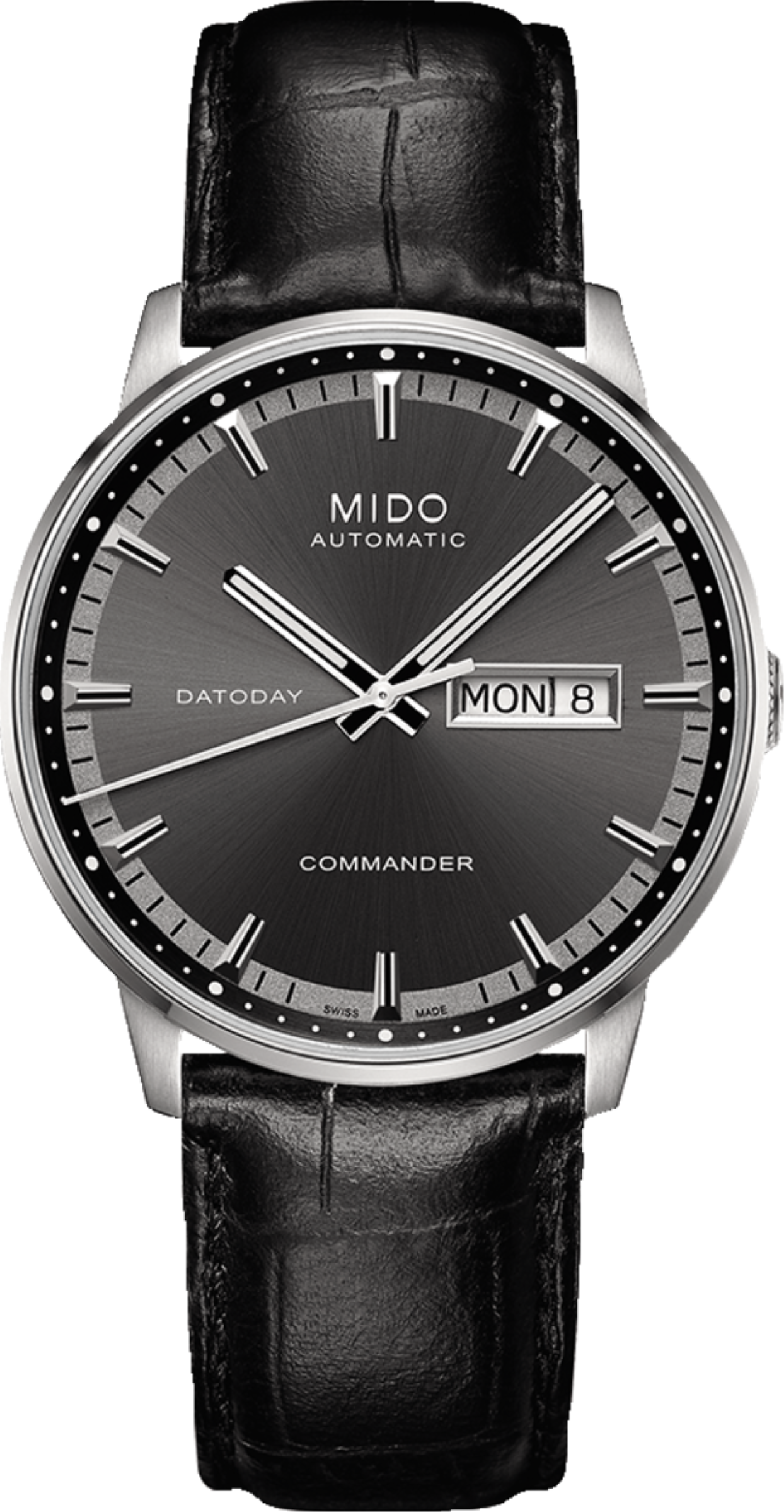 Funkce:Čas, datum, den v týdnu, strojek swiss Mido caliber 80 (Eta C07.621) - vyráběn firmou Eta exklusivně pro Mido = 25 kamenů (krokové ústrojí ocel/kámen), rezerva chodu 80 hodin, polokmity setrvačky 21.600/h = přesnost chodu 3 - 5 vteřin denně (nižší polokmity setrvačky jsou vyladěny jemnou regulací na věnci setrvačky pro maximální přesnost strojku), ozdobně lapovaný rotor, automatický nátah (pohyb ruky) + ruční nátah (hodinky lze také natahovat i korunkou)), průhledné zadní víčko pro náhled na strojek, svítící ručičky a indexy