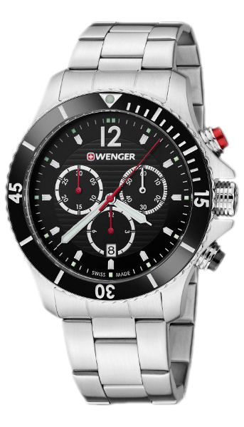 Funkce:Čas, datum, chronograf = stopky, svítící ručky a indexy, jednosměrně otočná luneta