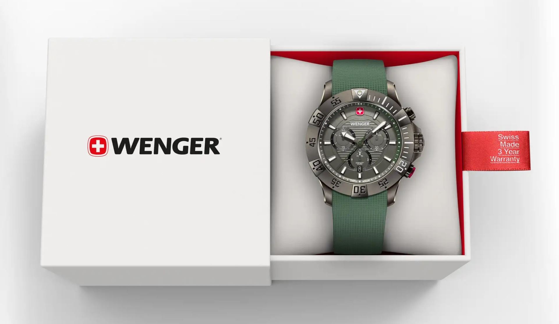 Funkce:Čas, datum, chronograf - stopky, strojek quartz Swiss Ronda Ronda 5030.D = přesnost chodu do 0,5 vteřiny denně, svítící ručky a indexy, jednosměrně otočná luneta