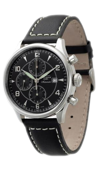 Funkce:čas, datum, chronograf = stopky, strojek swiss Valjoux 7750 (25 kamenů), rezerva chodu 46 hodin, kmity setrvačky 28.800/h = diference 3 - 4 vteřiny denně, svítící ručky