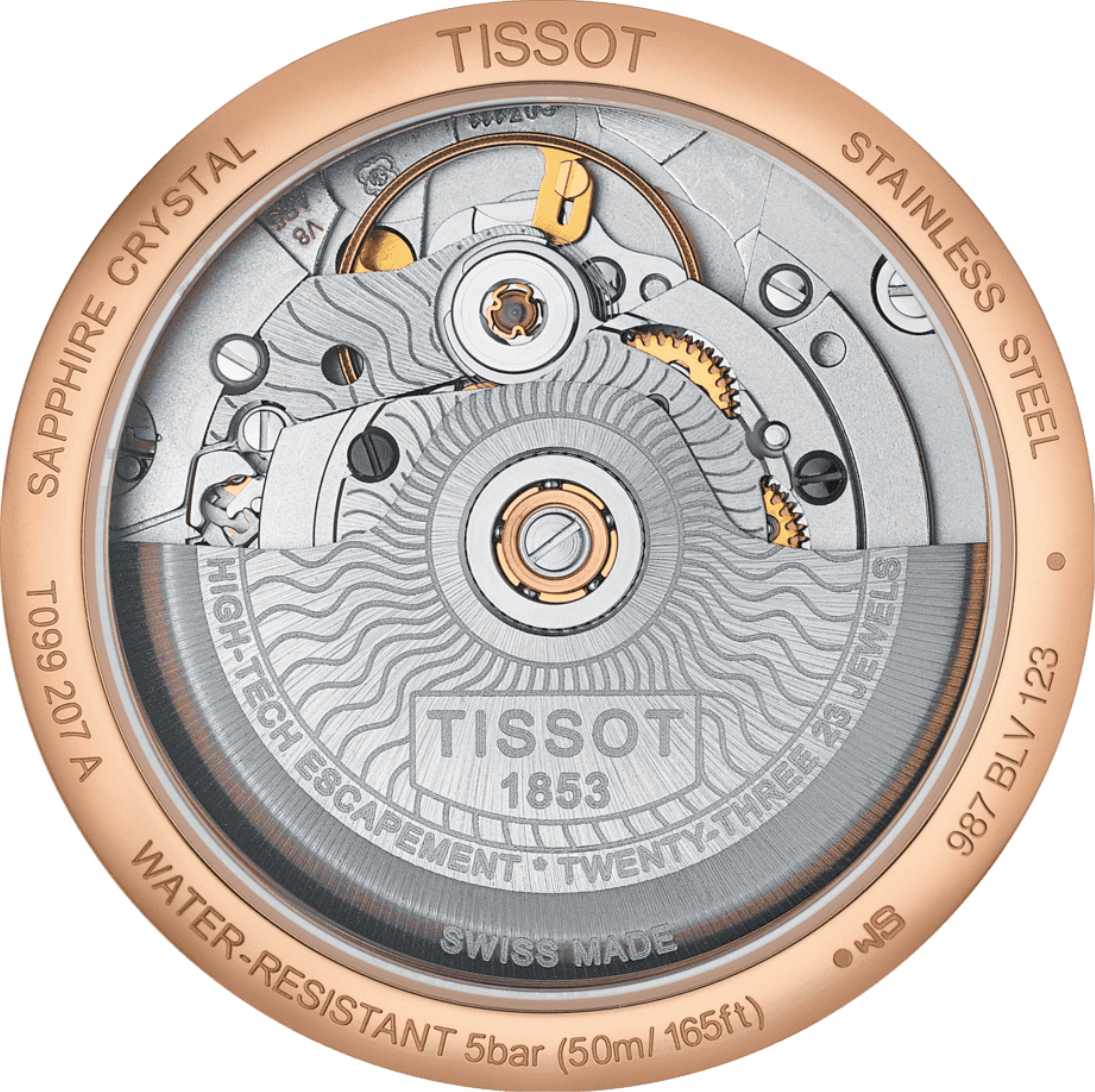 Funkce:Čas, datum, strojek swiss Powermatic 80 – 23 kamenů = rezerva chodu 80 hodin, polokmity setrvačky 21.600/h (3 Hz) = diference 3 - 5 vteřin denně (jemná regulace na věnci setrvačky), automat + ruční nátah, zapínání náramku = motýlková spona (velmi bezpečné a praktické zapínání), průhledné zadní víčko pouzdra pro náhled na strojek