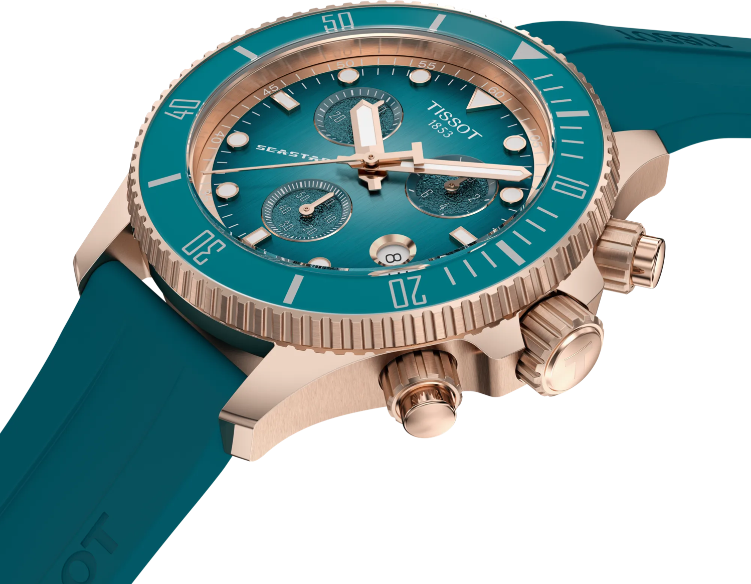 Nový Tissot Seastar 1000 Quartz Chronograph T120.217.37.041.00, zrozený z odkazu Seastar, představuje nový výraz charakteristické identity kolekce – vnáší přesnost do pohybu a osobitost do každé varianty. Jeho 38mm pouzdro z nerezové oceli je vodotěsné až do 30 barů (300 m) a nabízí spolehlivý výkon ve formátu, který vyhovuje široké škále zápěstí. Hodinky jsou poháněny švýcarským quartzovým chronografickým strojkem, disponují lunetou pro vodní sporty, šroubovací korunkou a dýnkem a chronografickými subciferníky pro přesné měření času. Luminiscenční ručičky a značky zajišťují čitelnost i za slabého osvětlení. Kolekce, která je k dispozici v řadě konfigurací, nabízí širokou škálu povrchových úprav a možností řemínků, které vyhovují různým náladám a stylům.