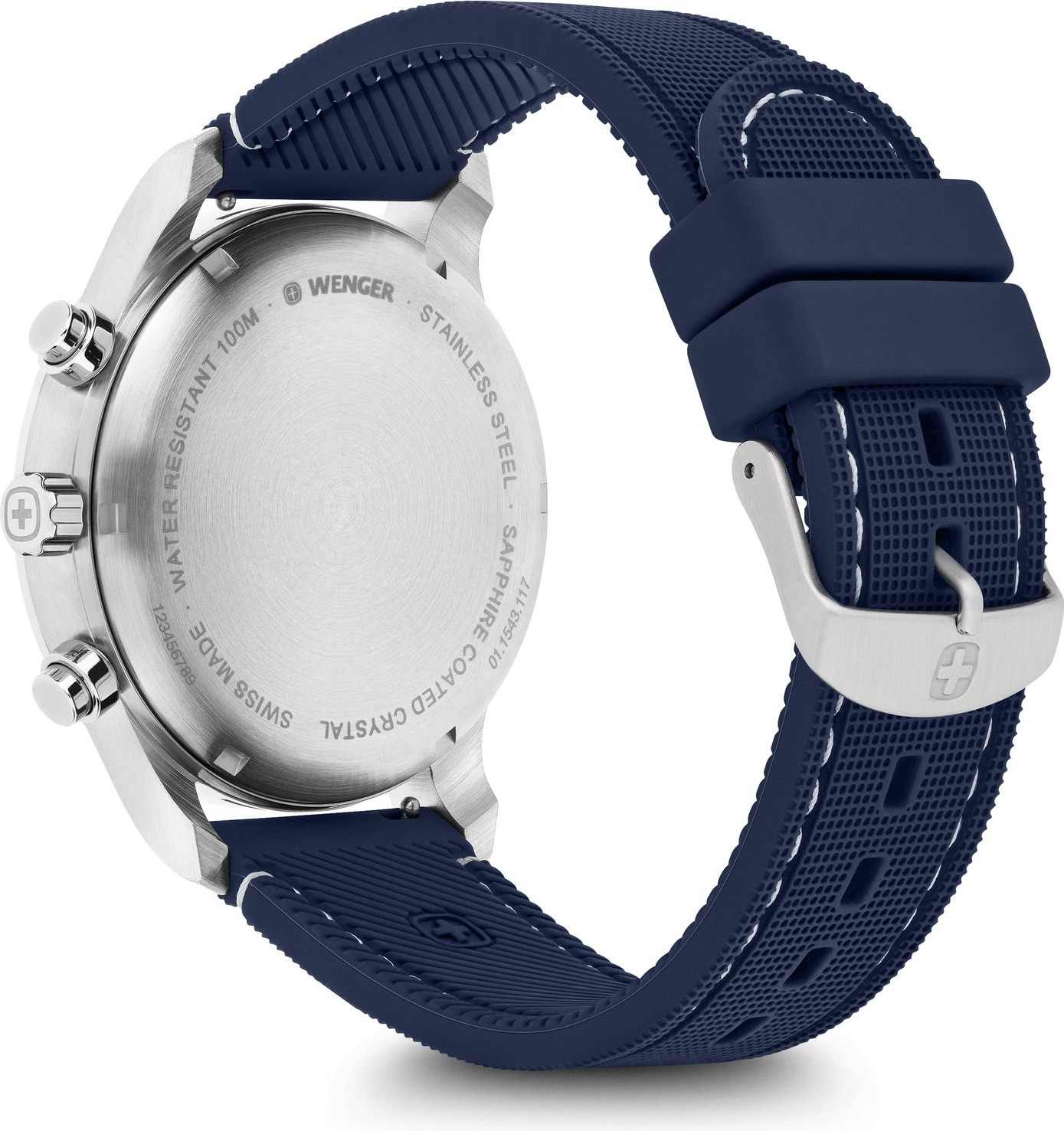 Funkce:Čas, datum, chronograf = stopky, obousměrně otočná luneta - telemetrická, švýcarský strojek Ronda 3520.D quartz = přesnost chodu do 0,5 vteřiny denně, ručičky jsou opatřeny tenkou vrstvou luminiscenčního materiálu (materiál, který po krátkém nasvícení dlouhou dobu svítí, což je praktické za šera a v noci)
