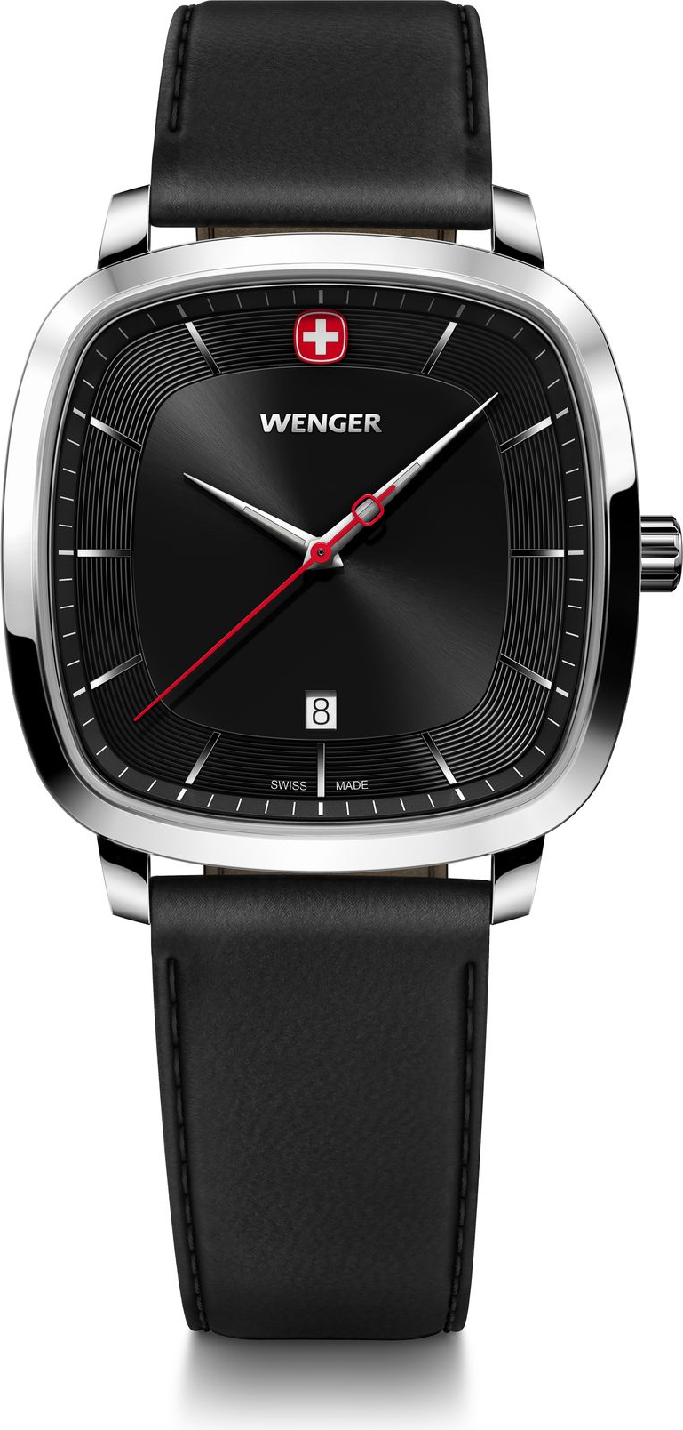 Funkce:Čas, datum, výrazná červená vteřinová ručička, švýcarský strojek Ronda 705 quartz = přesnost chodu do 0,5 vteřiny denně, ručičky jsou opatřeny tenkou vrstvou luminiscenčního materiálu (materiál, který po krátkém nasvícení dlouhou dobu svítí, což je praktické za šera a v noci)